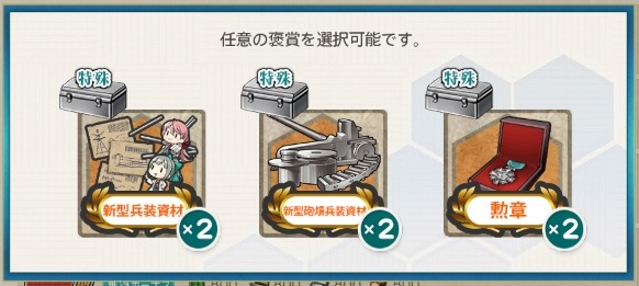 - 新型兵装資材2 or 新型砲熕兵装資材2 or 勲章2