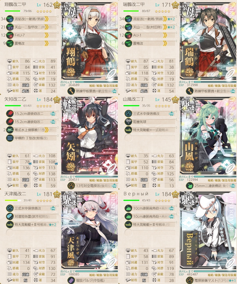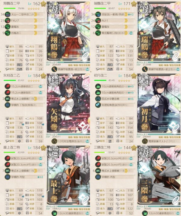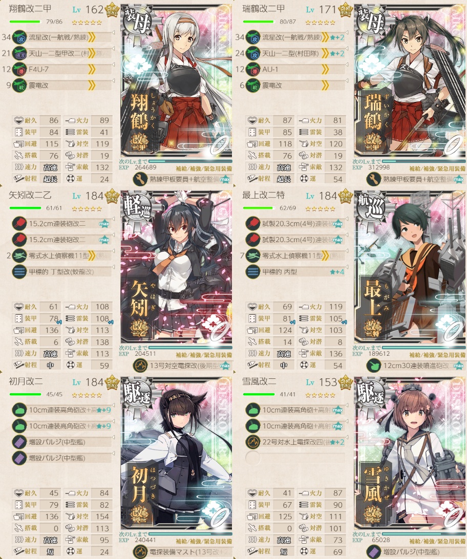 • 熟練甲板要員×2 or 試製甲板カタパルト or 熟練艦載機整備員