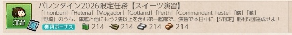2026/02/13に実装された期間限定任務の一つ。2026年バレンタインのウィークリー演習です。