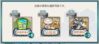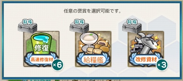 - 高速修復材6 or 給糧艦「間宮」 or 改修資材3