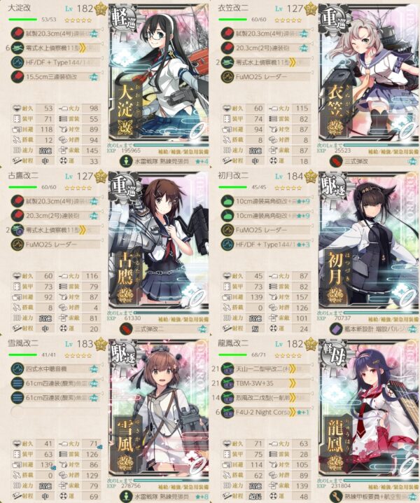 ・夜襲空母が使えない場合、妙高矢矧をカットイン艦に変更したり、