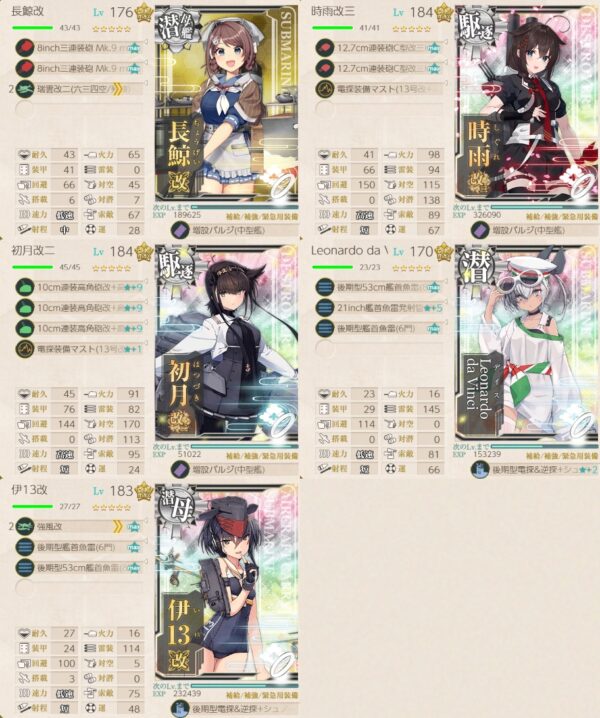 ボス到達率は下がりますが、駆逐4潜母1や練巡1駆逐4でも問題ありません。