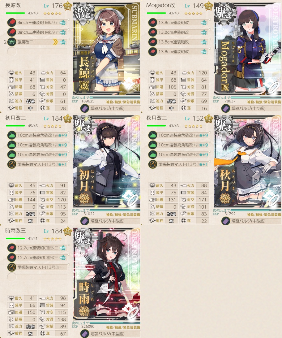 ボス到達率は下がりますが、駆逐4潜母1や練巡1駆逐4でも問題ありません。