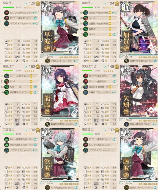 - 早波改二(旗艦)且つ、玉波, 涼波, 藤波, 浜波から2隻以上含めた艦隊で