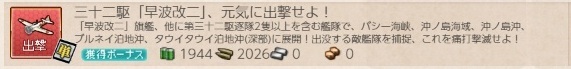2026/01/28に実装された任務の一つ。同日実装された早波改二を旗艦にした出撃任務です。