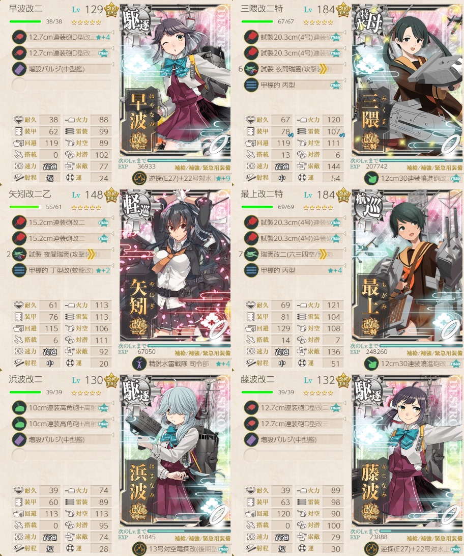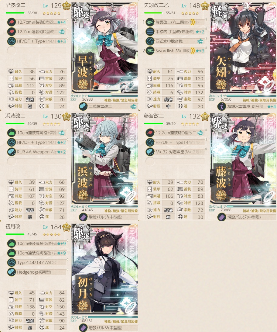 - 早波改二(旗艦)且つ、玉波, 涼波, 藤波, 浜波から2隻以上含めた艦隊で