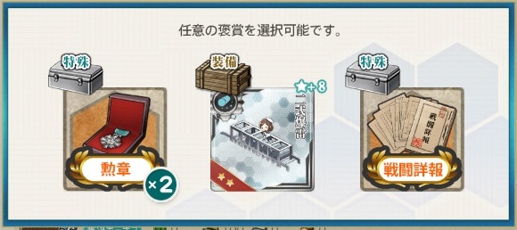 - 勲章2 or 二式爆雷☆8 or 戦闘詳報