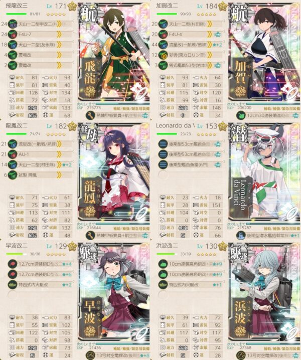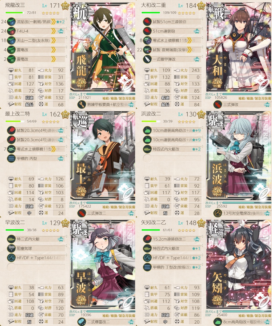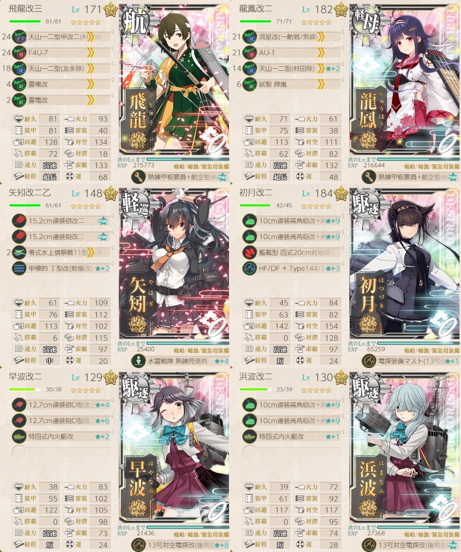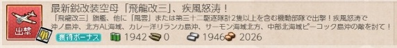 - 飛龍改三(旗艦)・(玉波, 涼波 ,風雲, 藤波, 早波, 浜波)から2隻以上含む艦隊で