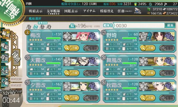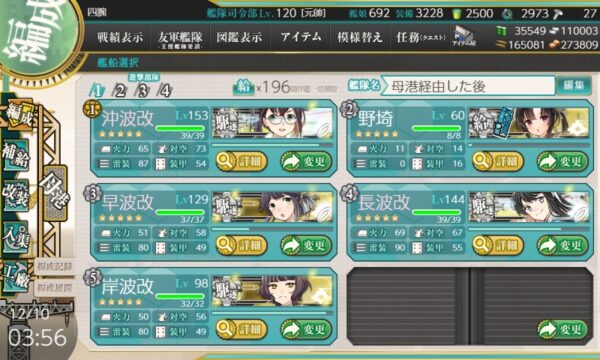 ※通常艦隊だとcond53はほしいことが多く、30分以上待つ必要があります。