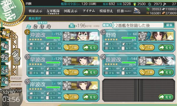 この際、15分の放置中は第一艦隊の方で出撃をしても問題ないですし、