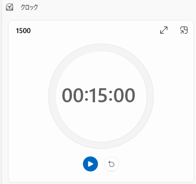 PCの場合、Windows11ではクロック機能が実装されているため、そちらを15分で設定し使用してもよいでしょう。