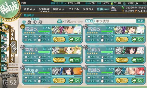 他、イベント中の第三艦隊を使う場合、遊撃部隊の7番艦迄キラ付けすることが可能です。