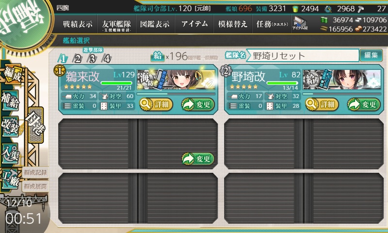 - 遠征が帰投する5~14分程度前に、編成画面で野埼タイマーのリセットを行う