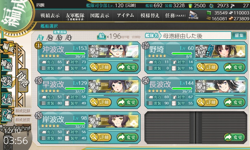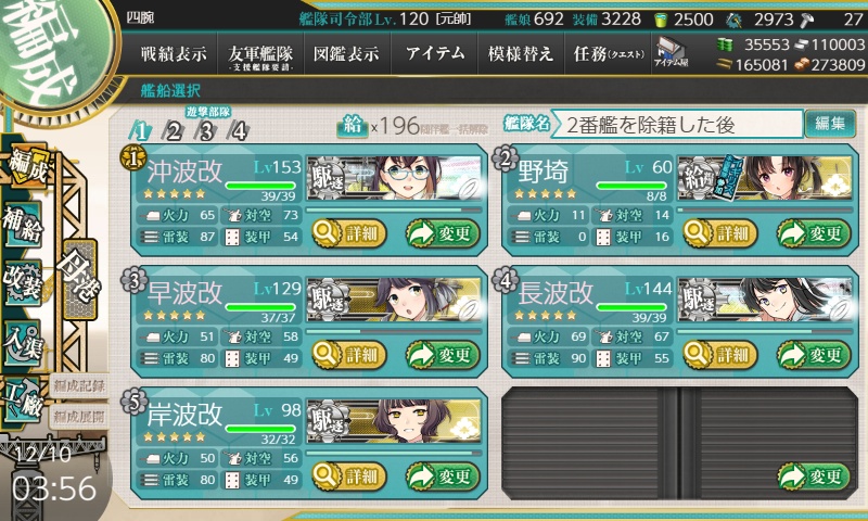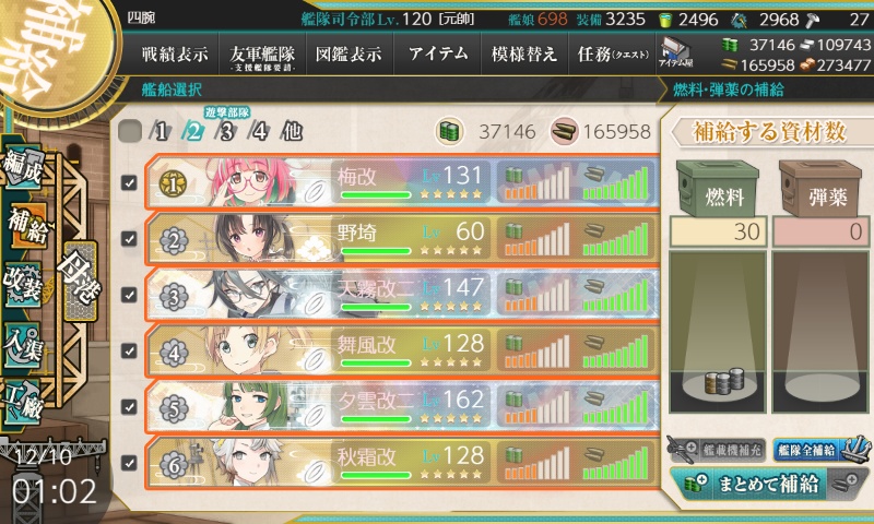 - 15分艦隊を放置し母港給糧艦システム稼働(キラ付け完了)