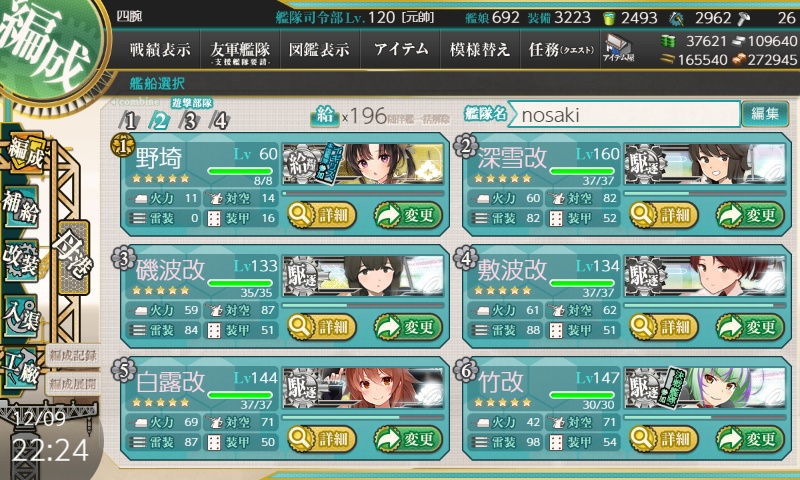 野埼以外の艦は未補給だったり、中大破していたりしてもOKです。