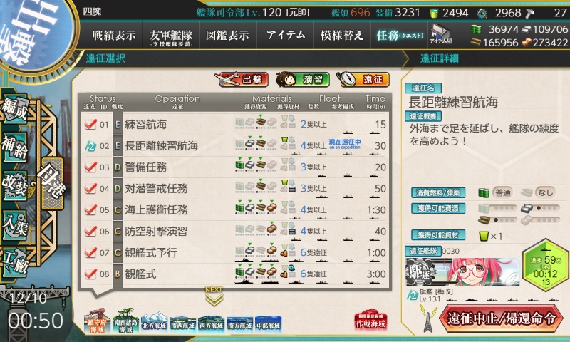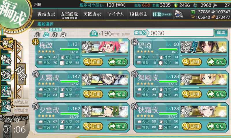 ※通常艦隊だとcond53はほしいことが多く、30分以上待つ必要があります。