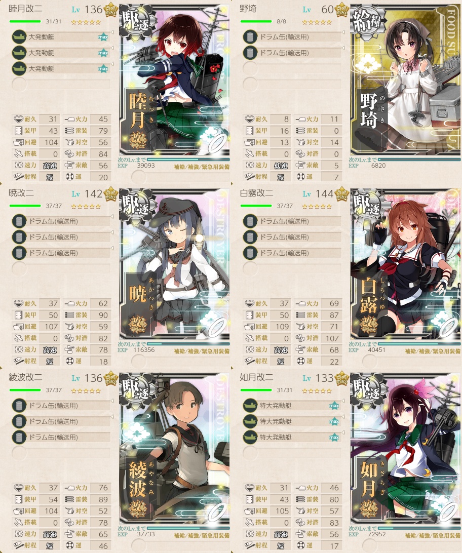 残りの5隻は母港給糧艦システムを活用することで支援のキラ付けを最小限にすることが出来ます。