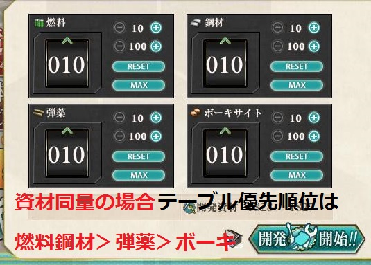 例えば開発出来ない旗艦(戦艦や空母)での10/10/10/20が入っているなら、