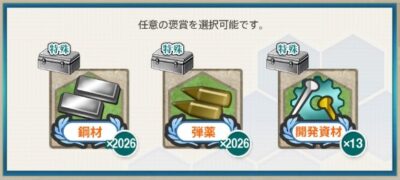 | 練度 | 旗艦:5 | 成功アイテム | 高速建造材0-1 |