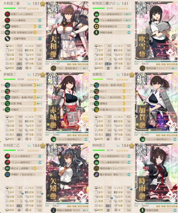 - 大和, 翔鶴, 衣笠改二, Gotland, 吹雪, 杉, Mogador, Johnston,