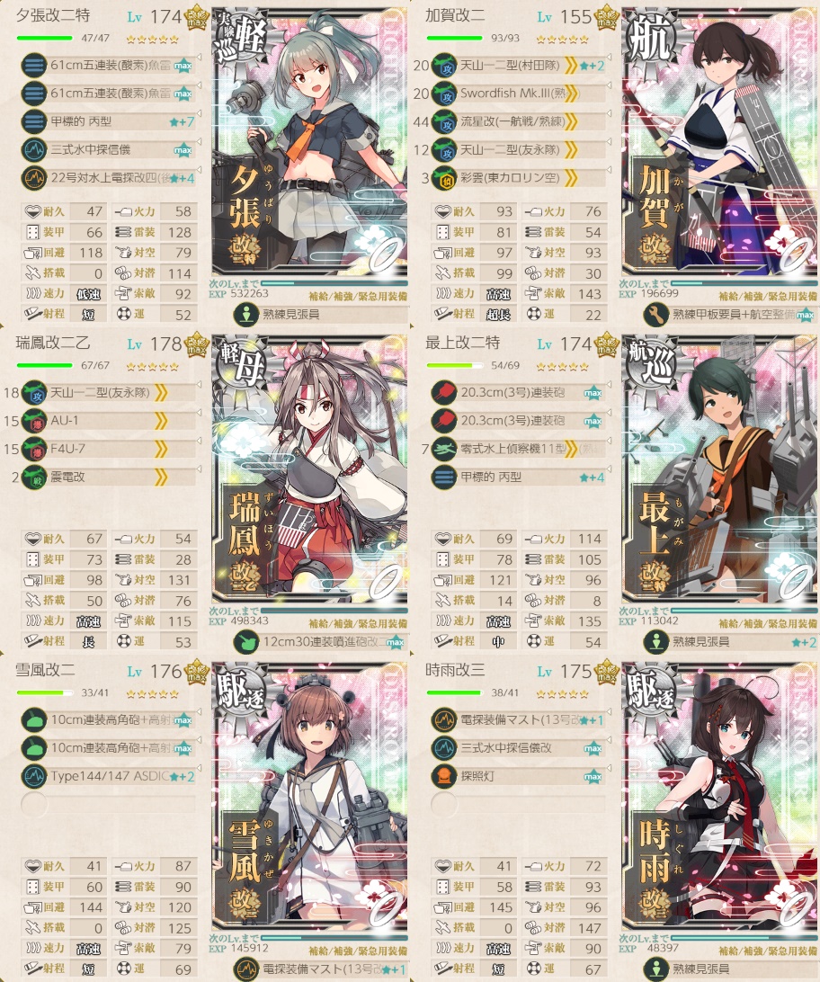 ・開幕火力を意識して、瑞雲等の航空機を配備。