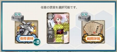 - 改修資材8 or 工作艦「明石」 or 戦闘詳報