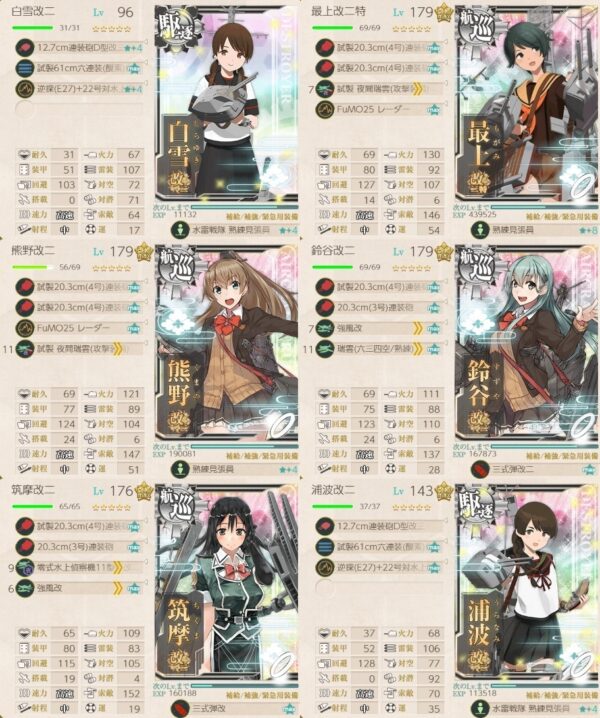 白雪改二は対地しつつ、対空カットイン可能で使い勝手悪くないですね。