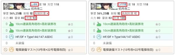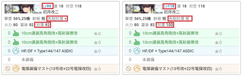 (ただし対潜火力の計算式上、火力には反映はされない)