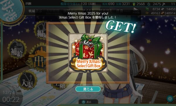 提督、少し早いですが、Merry Xmas!ささやかですが、例年通り、艦娘より Xmas Presents が提督の皆さんに贈られます。同贈呈及びXmas任務群は、12/27(土)実施予定のXmas明けメンテまで!#MerryXmas🎄…