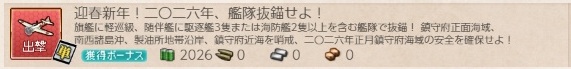 迎春新年!二〇二六年、艦隊抜錨せよ!(期間限定) 公開日:2026年1月1日 艦これ攻略情報期間限定任務 2026/01/01のオンメンテで実装された新春任務の一つ。1つ目の任務では、軽巡級を旗艦にし、鎮守府近海の各海域に出撃します。 続きを読む